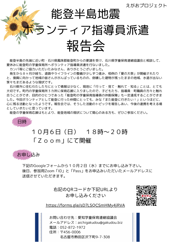 能登半島地震ボランティア指導員派遣報告会のお知らせ