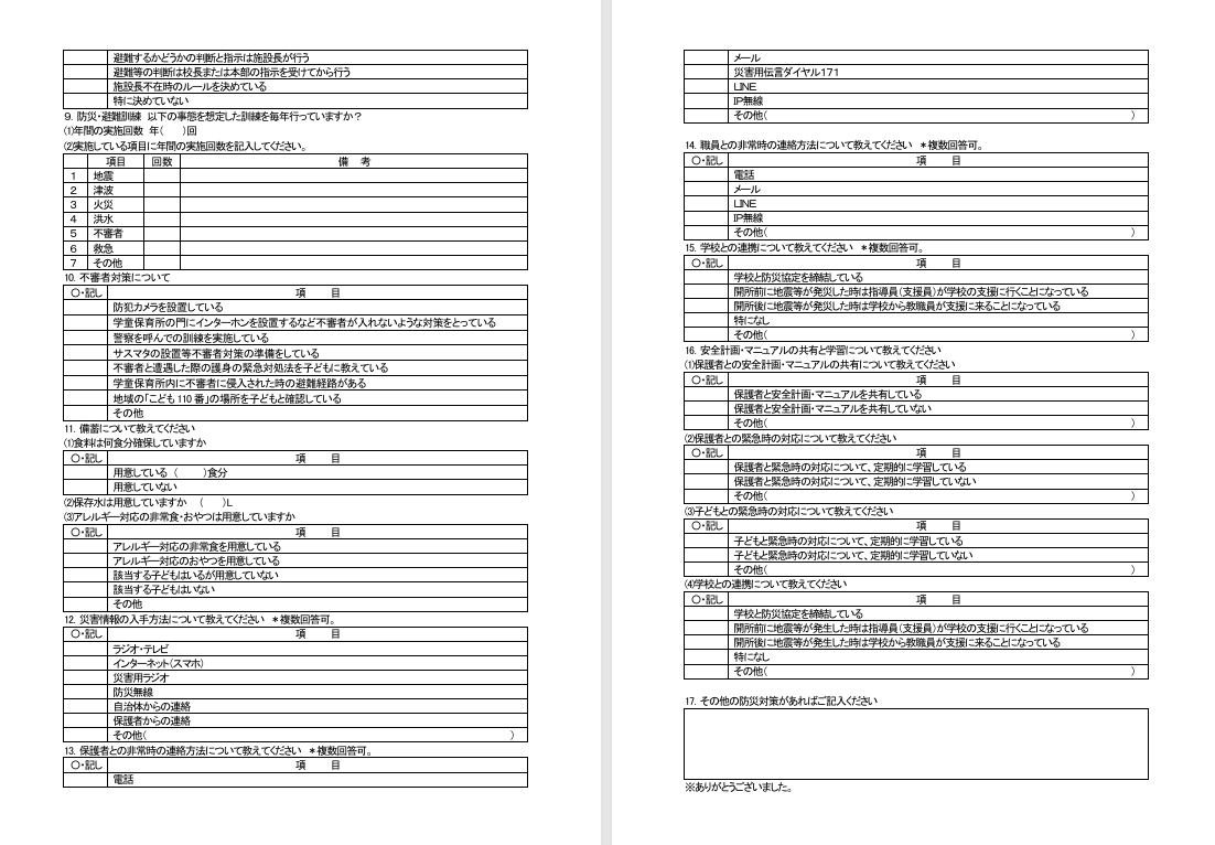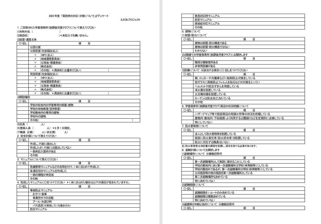 緊急時の対応・対策アンケートのお願い