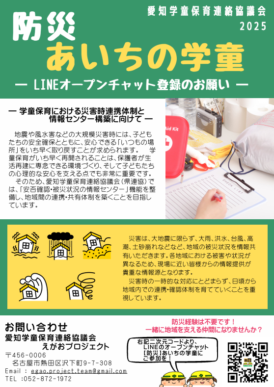 LINEオープンチャット「【防災】あいちの学童」にご参加ください。