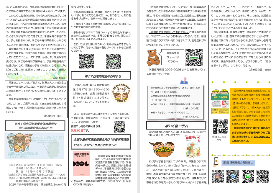 • 第57回定期総会のお知らせ• 「学童保育情報2025-2026」発行のご案内