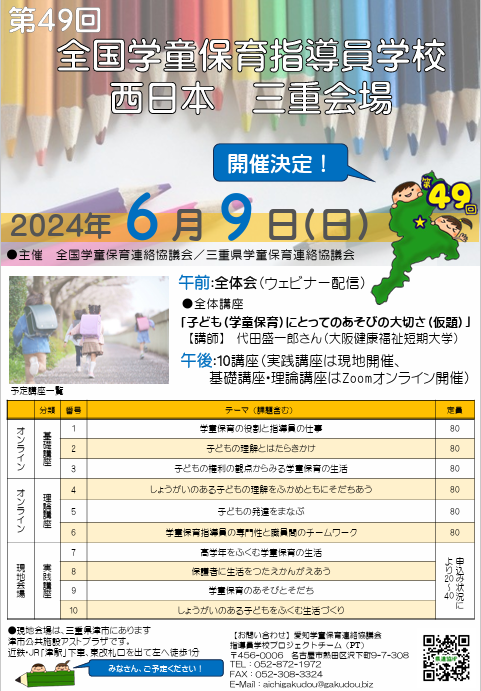 第49回全国学童保育指導員学校西日本三重会場開催のお知らせ