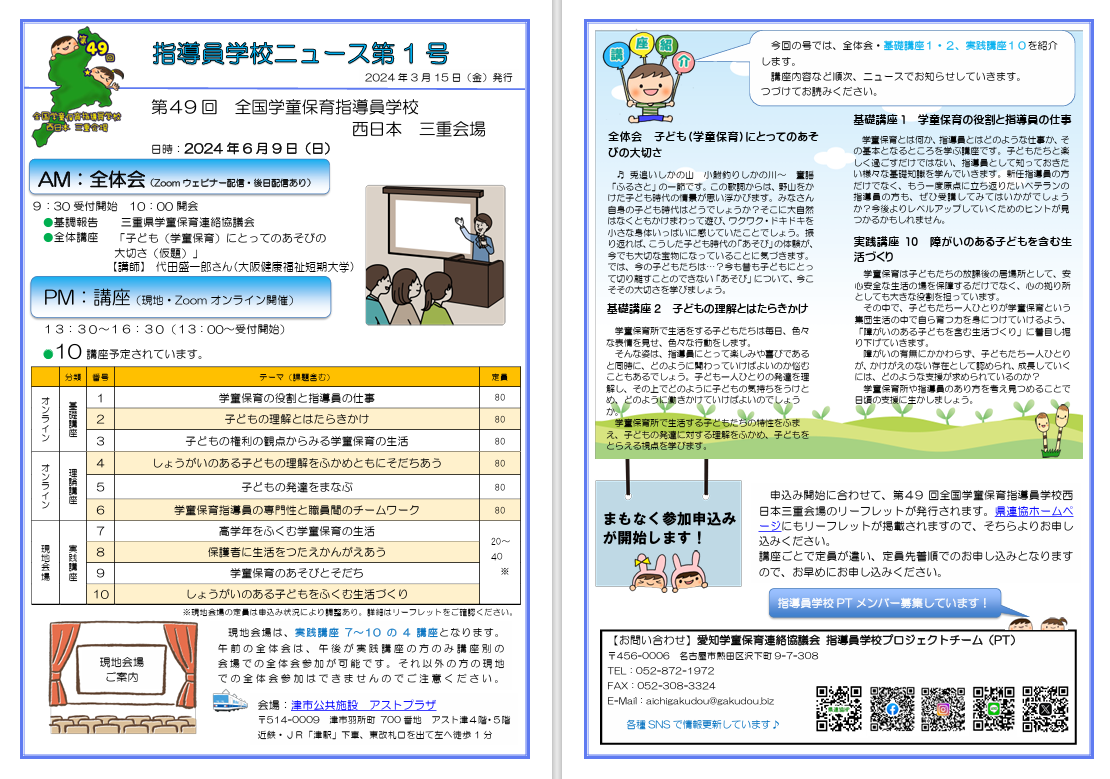 第48回全国学童保育指導員学校西日本愛知会場リーフレットが発行され、参加申込みがスタートしました。