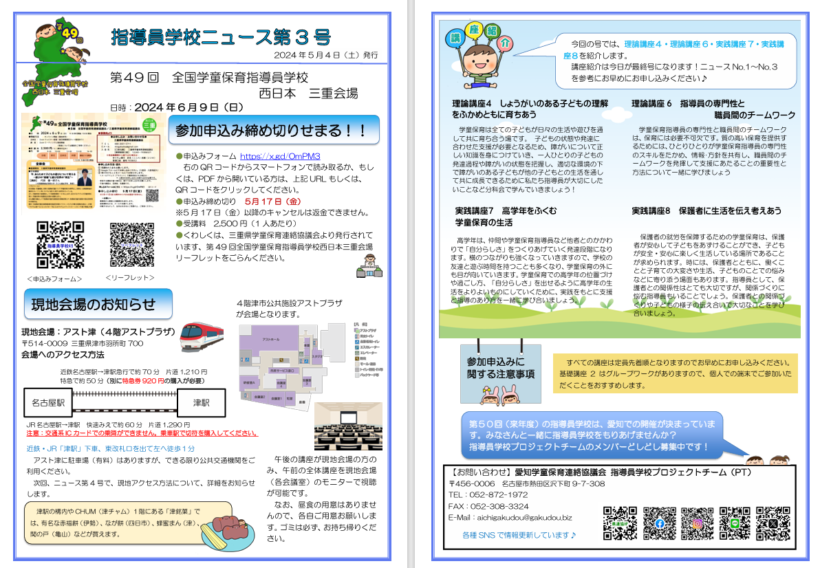 指導員学校ニュース第3号*参加申込をいそ号(ごう)が発行されました!