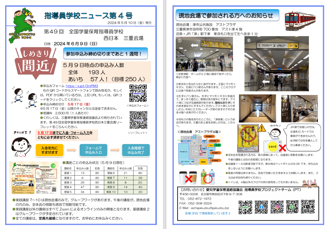 なお、指導員学校のお申し込みの締めきりは5月24日です。残り10日ほどになりますので、お申し込みがまだの方は、お早めにお申し込みください。
